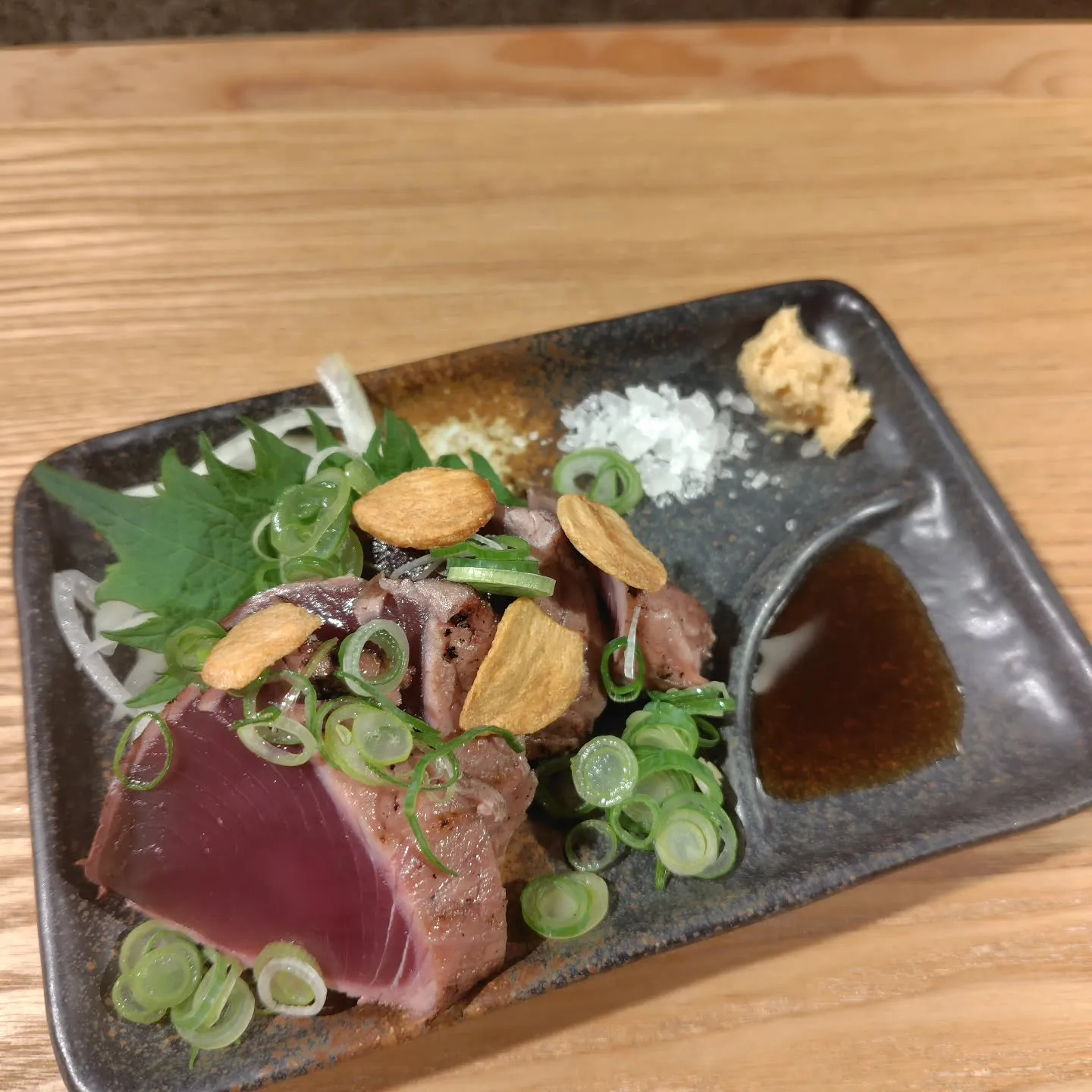 新しい別紙メニューから、今回は「カツオのたたき」をご紹介します。焼き鳥の合間に、“ちょっと贅沢に一杯”楽しみたいときにぴったりのおつまみです🐟